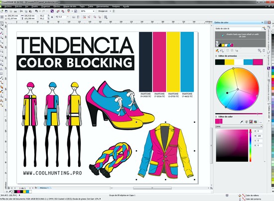 “De las suites de diseño y edición de gráficos disponibles en el mercado actual, CorelDRAW Graphics Suite es la recomendada para crear paneles de tendencias de moda, ya que combina en una misma suite todas las herramientas necesarias para montar el panel de tendencias e incluir en él tanto fotografías, como textos y dibujos de prendas en formato vectorial. Además, permite trabajar con documentos multipágina, haciendo muy sencillo crear reportes de tendencias con muchos elementos y exportarlos directamente a un único archivo PDF de varias páginas. Como CorelDRAW es el programa más utilizado en el sector del diseño de moda, también resulta más práctico incorporar al panel dibujos representativos de prendas y accesorios.”